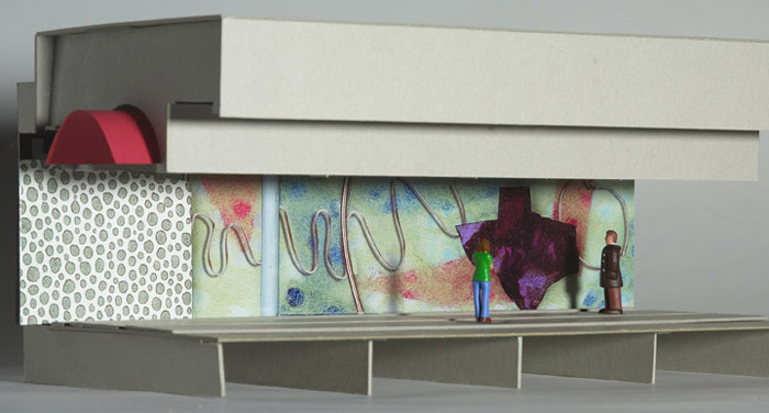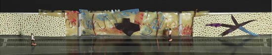 Major Projects: Love Field Moving Sidewalk ProposalThe project: A 1/4 mile art installation to run alongside a 1/4 mile moving sidewalk in the parking garage of Love Field Airport in Dallas. Our proposal: My art. Anne Militello's fabulous lighting design. And an original musical score by composer James Neel. It woulda been fabulousa colorful and relaxing environment of multi sensory art to still and transition the traveler from Dallas to the clouds and back again. But we didn't get the job. That's show biz. Congratulations to Susan Magilow and Philip Lamb, who DID.Dallas